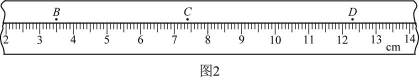 (2)数据分析。打点计时器在随物体做匀变速直线运动的纸带上打点,其中一部分如图2所示,B、C、D为纸带上标出的连续3个计数点,相邻计数点之间还有4个计时点没有标出。打点计时器接在频率为50 Hz的交流电源上。则打C点时,纸带运动的速度vC =__________m/s(结果保留小数点后两位)。