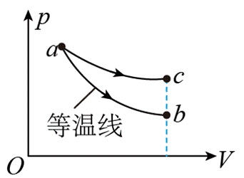 如图所示,一定质量的理想气体分别经历a→b和a→c两个过程,其中a→b为等温过程,状态b、c的体积相同,则( )