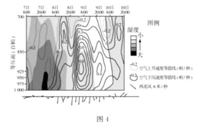 大气污染受湿度、大气运动等因素影响。我国某地某月7日8:00至10日20:00经历了一次较强的大气污染,PM2.5浓度变化大。此期间该地空气垂直运动弱。图4示意此期间该地相关气象要素的变化情况(箭头表示对应时刻的近地面风向和风速,帕/秒是气象部门计量空气垂直运动速度的单位)。据此完成14—16题。