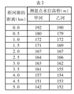 甲河与乙河发源于某山地两侧(图8)。某科研小组调研发现,甲河流经地区的岩石节理发有、压实和成岩作用相对较弱。表2示意两条河流河源段测量点的水位高程。