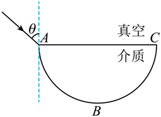 如图,ABC为半圆柱体透明介质的横截面,AC为直径,B为ABC的中点。真空中一束单色光从AC边射入介质,入射点为A点,折射光直接由B点出射。不考虑光的多次反射,下列说法正确的是( )