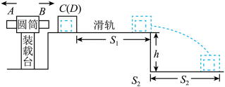 如图,某爆炸能量测量装置由装载台和滑轨等构成,C是可以在滑轨上运动的标准测量件,其规格可以根据测量需求进行调整。滑轨安装在高度为h的水平面上。测量时,将弹药放入装载台圆筒内,两端用物块A和B封装,装载台与滑轨等高。引爆后,假设弹药释放的能量完全转化为A和B的动能。极短时间内B嵌入C中形成组合体D,D与滑轨间的动摩擦因数为