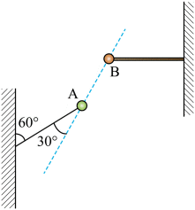 如图,两带电小球的质量均为m,小球A用一端固定在墙上的绝缘轻绳连接,小球B用固定的绝缘轻杆连接。A球静止时,轻绳与竖直方向的夹角为