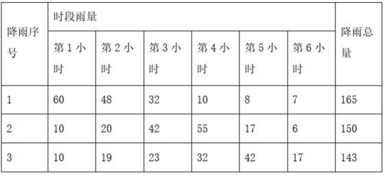为探究降雨过程、土壤含水量与洪峰流量的关系,某科研小组在小流域模拟了形成相同洪峰流量的降雨过程,表为3次降雨过程数据(雨量单位:mm)。3次降雨前土壤含水量相同且偏低。据此完成下面小题。