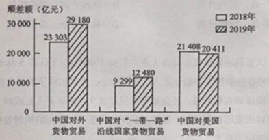 15.图4反映2018~2019年中国对外货物贸易顺差情况(本题将全球经济体分为中国、“一带一路”沿线国家、美国和其他经济体)。