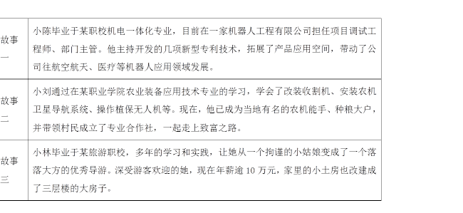 材料二 技能报国,人人出彩。职业教育书写了许多“技能改变人生”的精彩故事。