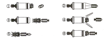 画线句描述火箭分离阶段火箭运行阶段对应图②,然后是三级火箭前端打开,紧接着“哥伦比亚号”飞船弹出,“鹰”号待命,根据材料给出的图解可知对应图④,之后材料描述“哥伦比亚”号驾驶员让飞船慢慢转身,显然对应图①,接着“哥伦比亚”与“鹰”对接成功则对应⑥,对接工作完成之后,两个飞船离开火箭,继续飞行对应③⑤,故顺序为②④①⑥③⑤,选择B项。