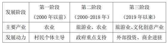 大岭村位于广州市番禺区石楼镇,距广州市区约15千米。村内有保存较为完好的岭南风格建筑群。2000年以来,大岭村先后被评为“中国历史文化名村”“全国乡村旅游重点村”,产业逐渐多元化。2020年村内户籍人口2653人,常住人口4000余人,各项产业总收入约9000万元。下表示意大岭村的发展阶段及特征。据此完成6~8题。