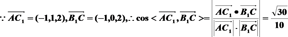 利用向量法,建立空间直角坐标系,写出向量AC1和B1C的坐标,再用夹角的余弦公式求解。