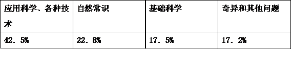 28.1876年,英国传教士在上海创办的《格致汇编》设有“互相问答”栏目,其中大多问题是从读者的兴趣、关注点出发的。各类问题所占比例如表1所示。