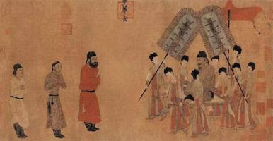 25.图4为唐代著名画家阎立本的《步辇图》,描绘了唐太宗李世民接见吐蕃使臣的情景。该作品体现了