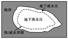 利用大型挖泥船将海底岩石搅碎,并将碎石和泥沙一起吹填造地,成为在海中建设人工岛的主要方式。图3示意人工岛地下淡水分布。据此完成7~8题。