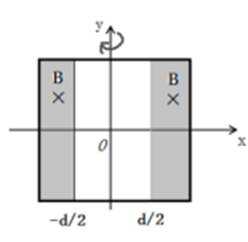 如图甲所示,在-d≤x≤d,-d≤y≤d的区域中存在垂直Oxy平面向里、磁感应强度大小为B的匀强磁场(用阴影表示磁场的区域),边长为2d的正方形线圈与磁场边界重合。线圈以y轴为转轴匀速转动时,线圈中产生的交变电动势如图乙所示。若仅磁场的区域发生了变化,线圈中产生的电动势变为图丙所示实线部分,则变化后磁场的区域可能为