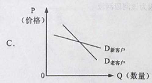 13.对于同一商品,某企业销售给老客户的价格高,而销售给新客户的价格低。正确解释该企业价格策略原因的图示是(图中D表示需求)