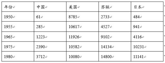 表2 1950~1980年部分国家钢产量变化表(单位:万吨)