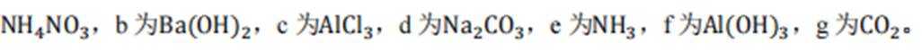 先分析图。物质a与b经加热生成e,b与c反应生成产物f;c与d经过某种反应生成产物f和g.那么可以得出a为