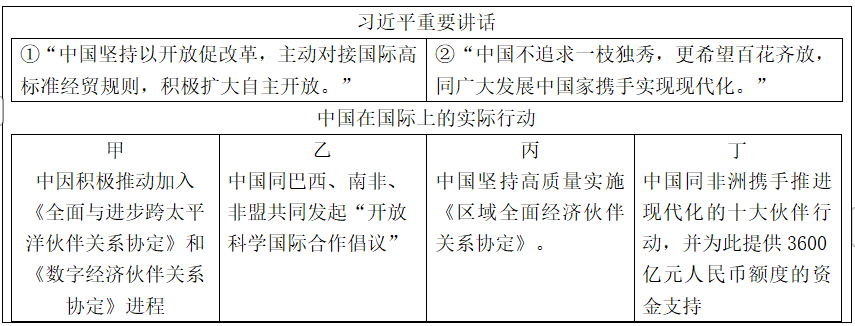 如图中,中国在国际上的实际行动与习近平的重要讲话精神相对应的是( )