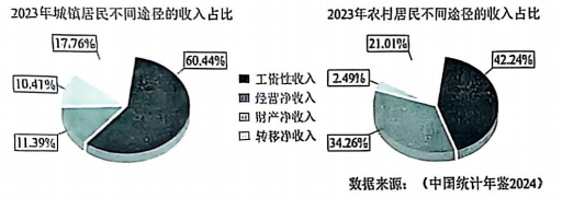 ②城镇居民的按劳分配收入在收入分配中占比高于农村居民
