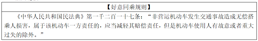 ①法律依据:《民法典》规定,行为人因过错侵害他人民事权益造成损害的,应当承担侵权责任。非营运机动车发生交通事故造成无偿搭乘人损害,属于该机动车一方责任的,应当减轻其赔偿责任。