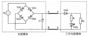 如图所示是小明设计的电源模块和工作电路模块。下列分析中不正确的是( )