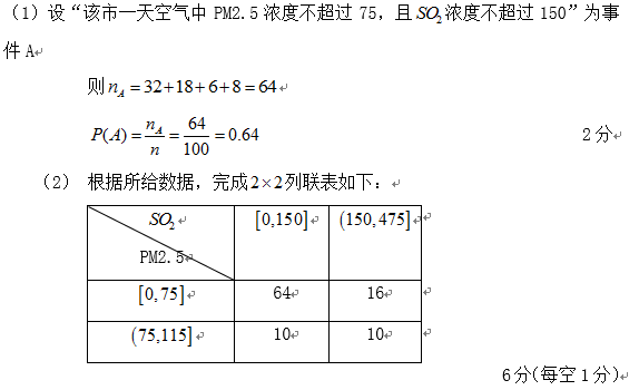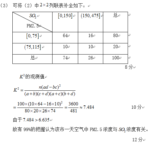 (3)根据(2)中的列联表,判断是否有99%的把握认为该市一天空气中
