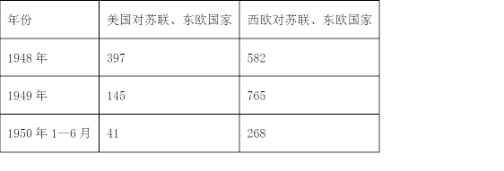 16. 如表美国与西欧对苏联、东欧国家贸易出口额 比较单位:百万美元,如表作为直接论据,可用来探究的论题是
