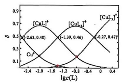 铜(I)、乙腈(简写为L)的某水溶液体系中含铜物种的分布曲线如图。纵坐标(δ)为含铜物种占总铜的物质的量分数,总铜浓度为