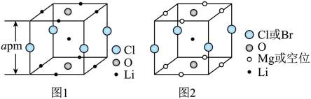 晶体结构的缺陷美与对称美同样受关注。某富锂超离子导体的晶胞是立方体(图1),进行镁离子取代及卤素共掺杂后,可获得高性能固体电解质材料(图2)。下列说法错误的是