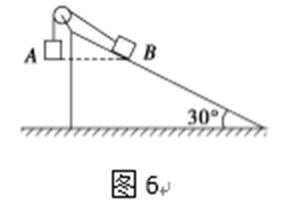 19.如图6所示,A、B两物体用一根跨过定滑轮轻的细绳相连,B物体置于固定斜面体的光滑斜面上,斜面倾角为30°,当A、B两物体静止时处于相同高度.现剪断细绳后,下列说法中正确的是( )