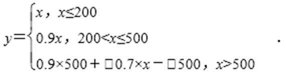 依题意,付款总额y与标价x之间的关系式为(单位为元)