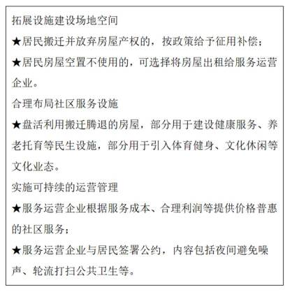 材料一 【相关政策】国家发展改革委发布的《城市社区嵌入式服务设施建设工程实施方案》提出,在城市社区(小区)嵌入养老托育、社区助餐等功能性设施和适配性服务,推动优质普惠公共服务下基层、进社区;按照精准化、规模化、市场化原则,优先和重点提供急需紧缺服务。