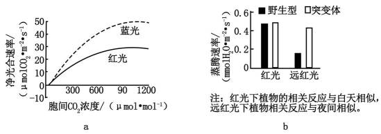 (2)图b中,突变体水稻在远红光与红光条件下蒸腾速率接近,推测其原因是_______。