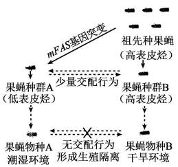 果蝇外骨骼角质中表皮烃的含量不仅影响果蝇的环境适应能力,也影响果蝇的交配对象选择(如图)。表皮烃的合成受mFAS基因控制。下列叙述错误的是( )