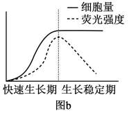 (2)将W1在适宜条件下进行摇瓶培养,定时取样检测培养液中细胞密度,方法有______(答一种)。接种前需检测液体培养基的荧光强度,其作用是________。培养结果(图b)表明,进入生长稳定期后荧光强度快速下降,原因是________。
