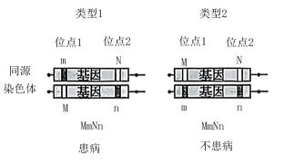 若某常染色体隐性单基因遗传病的致病基因存在两个独立的致病变异位点1和2(M和N表示正常,m和n表示异常),理论上会形成两种变异类型且效应不同(如图),但仅凭个体的基因检测不足以区分这两种变异类型。通过对人群中变异位点的大规模基因检测,有助于该遗传病的风险评估。表为某人群中这两个变异位点的检测数据。下列对该人群的推测,合理的是( )