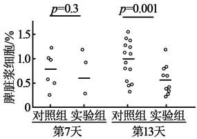(3)抗原 去除脾神经组的浆细胞比例显著低于对照组,脾神经能促进浆细胞的形成。