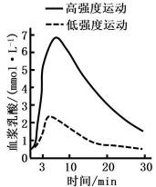 为研究运动强度对人体生理活动的影响。某研究团队招募一批健康受试者分别进行3min低强度运动和高强度运动,运动开始后血浆乳酸水平见图。下列叙述错误的是( )