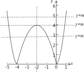 当m=4时,方程|x2+4x|=m有三个实根,它们的和为-6,