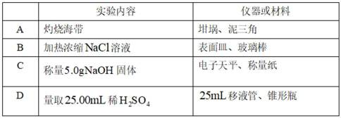 完成下列实验所用部分仪器或材料选择正确的是( )