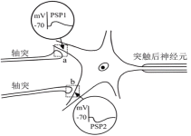 神经元的轴突末梢可与另一个神经元的树突或胞体构成突触。通过微电极测定细胞的膜电位,PSP1和PSP2分别表示突触a和突触b的后膜电位,如图所示。下列叙述正确的是( )