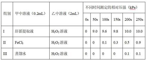 为探究酶的催化效率,某同学采用如图所示装置进行实验,实验分组、处理及结果如下表所示。