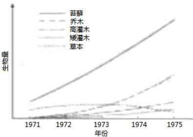 (3)当群落演替到——时,群落的总生物量将保持相对稳定,其原因是——。在此之前的群落演替过程中,不同植物类型中——的生物量会持续上升,而——的生物量呈下降趋势。