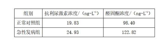 梅尼埃病表现为反复发作的眩晕、听力下降,并伴有内耳淋巴水肿。检测正常人及该病患者急性发作期血清中相关激素水平的结果如下表,临床上常用利尿剂(促进尿液产生)进行治疗。下列关于该病患者的叙述错误的是( )