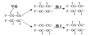 各个选项:A:酶E的作用是催化DNA复制:这个选项不准确,因为通常DNA复制过程中的酶包括DNA聚合酶和拓扑异构酶等,不包含甲基化修饰酶。B:甲基是DNA半保留复制的原料之一:这个选项是错误的。DNA半保留复制过程中,原料是四种脱氧核苷酸,而不是甲基。甲基化是在DNA复制之后发生的,它涉及DNA的甲基化修饰。C:环境可能是引起DNA甲基化差异的重要因素:这个选项是正确的。DNA甲基化可以受到环境因素的影响,如饮食、化学物质暴露、压力等,这些因素可能导致同卵双胞胎间DNA甲基化的差异。D:DNA甲基化不改变碱基序列和生物个体表型:这个选项是错误的。DNA甲基化可以影响基因的表达,从而影响生物个体的表型。例如,甲基化可以抑制基因的表达,从而影响个体的生理和行为特征。