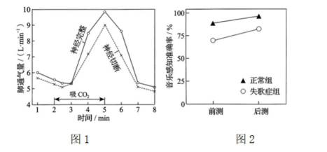 (3)失歌症者先天唱歌跑调却不自知,为检测其对音乐的感知和学习能力,对正常组和失歌症组进行“前测一训练一后测”的实验研究,结果如图2。从不同角度分析可知,与正常组相比,失歌症组______(答出2点);仅分析失歌症组后测和前测音乐感知准确率的结果,可得出的结论是______,因此,应该鼓励失歌症者积极学习音乐和训练歌唱。