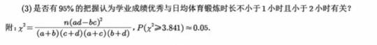 (3)学业成绩与锻炼时长不小于1小时且小于2小时有关