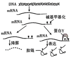 甲基化读取蛋白Y识别甲基化修饰的mRNA,引起基因表达效应改变,如图所示。下列相关叙述正确的是( )
