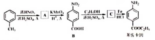 苯佐卡因是临床常用的一种手术用药。以甲苯为起始原料的合成路线如下: