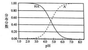 12.某弱酸HA溶液中主要成分的分布分数随pH的变化如图所示。下列说法错误的是