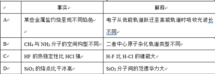 13.下列对有关事实的解释正确的是